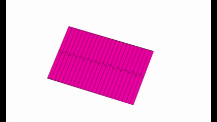 次にジョイント部の幅を縮小しました。すると折りあがった蛇腹は鋭角になりました。