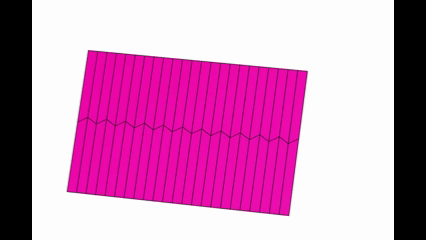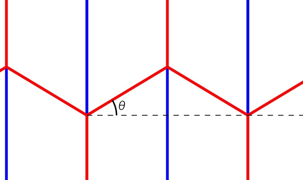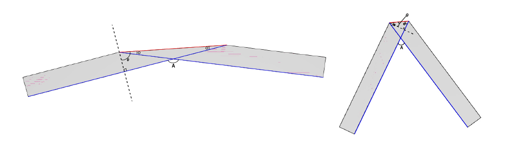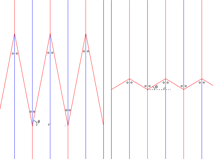 今回ジョイント部分は左右等しい長さと角度ですそのため、図にするとこのようになります。少々小さくて見ずらいですが、上がおる前の蛇腹でしたがおりあがり後の蛇腹です。