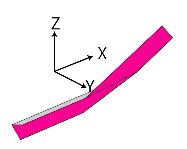 Y、ZはXZ 平面への投影する際短くなります。短くなる限界は、折り切った時のθに大きく影響されます。