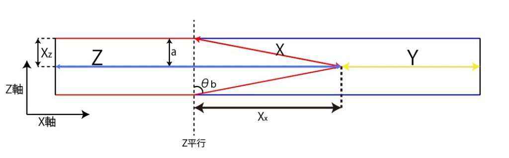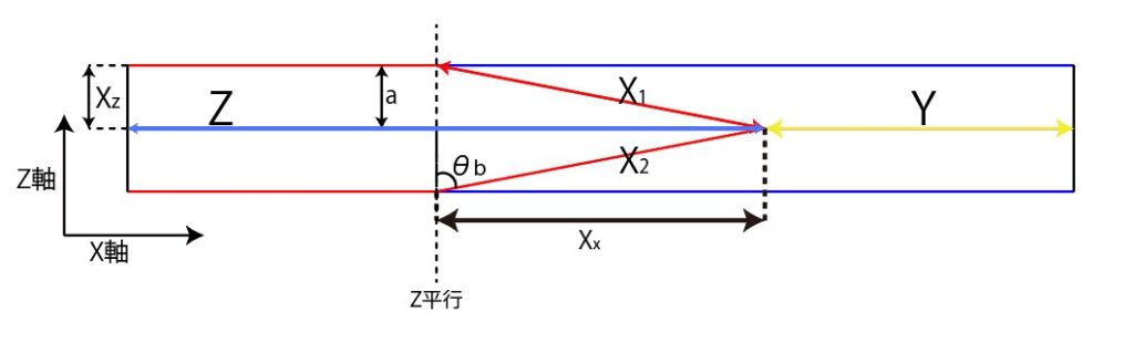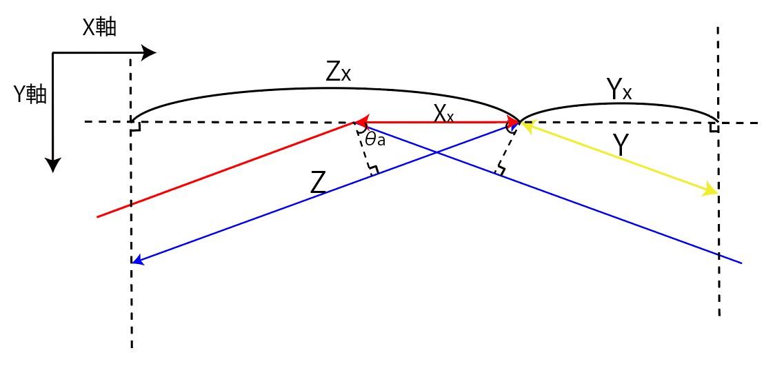 | θa=直線Zの垂線とXZ平面のなす角 | Xx=線分XをZ方向に投影した際の大きさ |