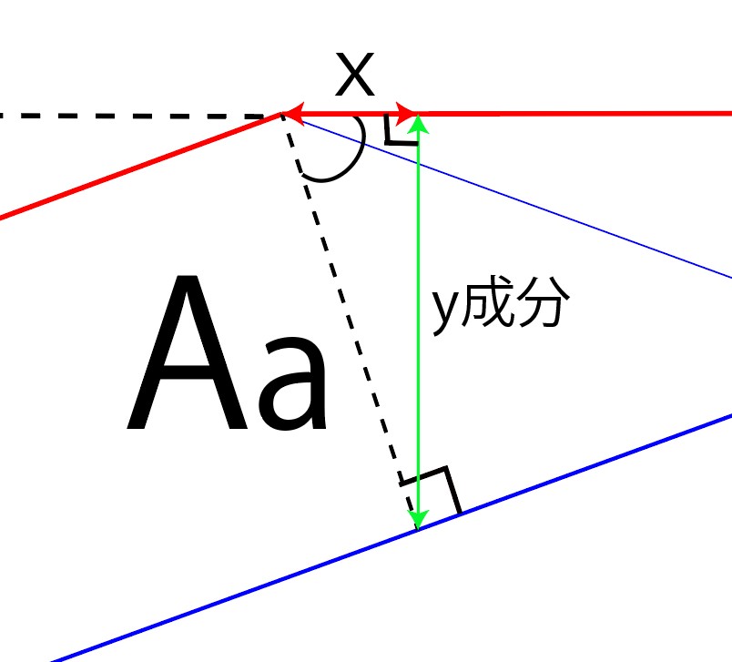 どちらもY方向に対して関係しています。そのためy要素を抽出することで、θa、θbの関係が出せそうです。